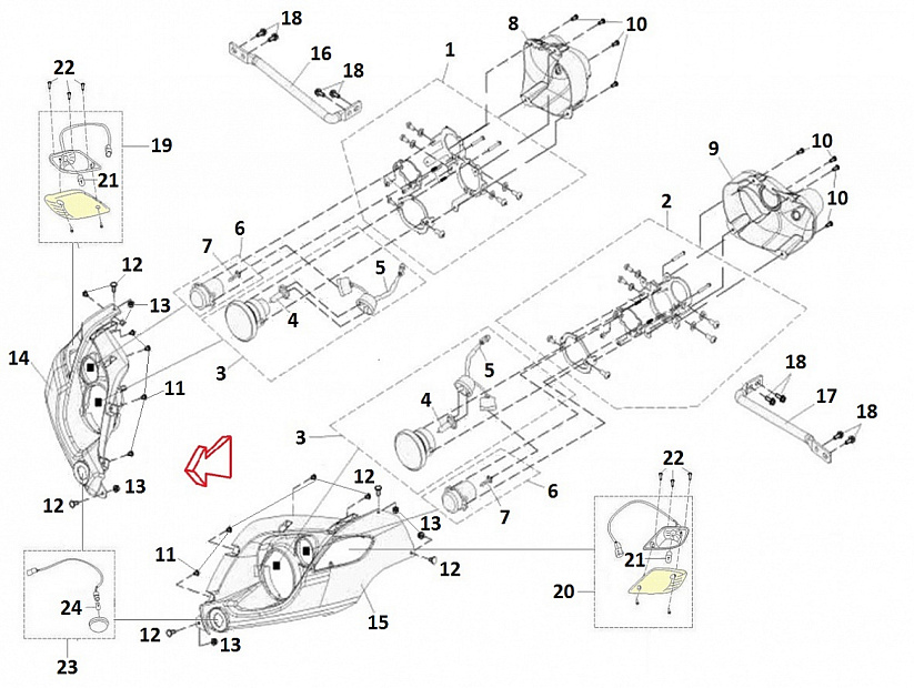 Фары передние, крепление, пластик