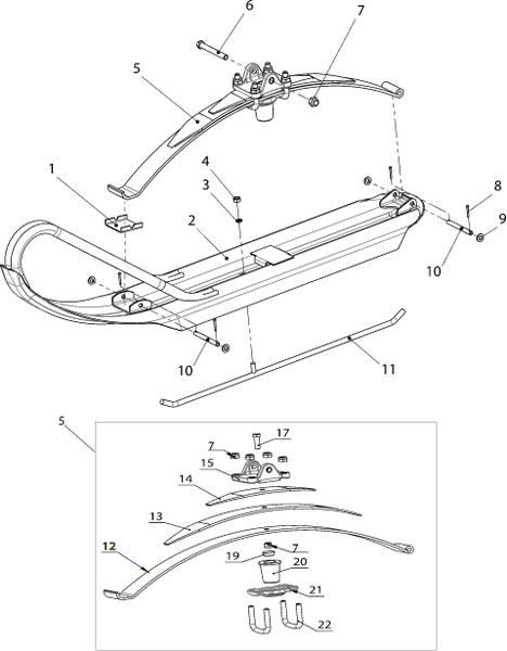 Лыжа с рессорой металлическая