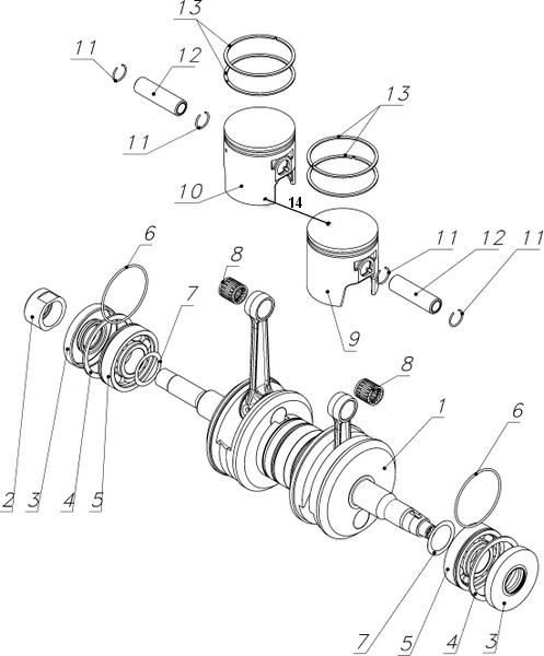 Вал коленчатый, поршни